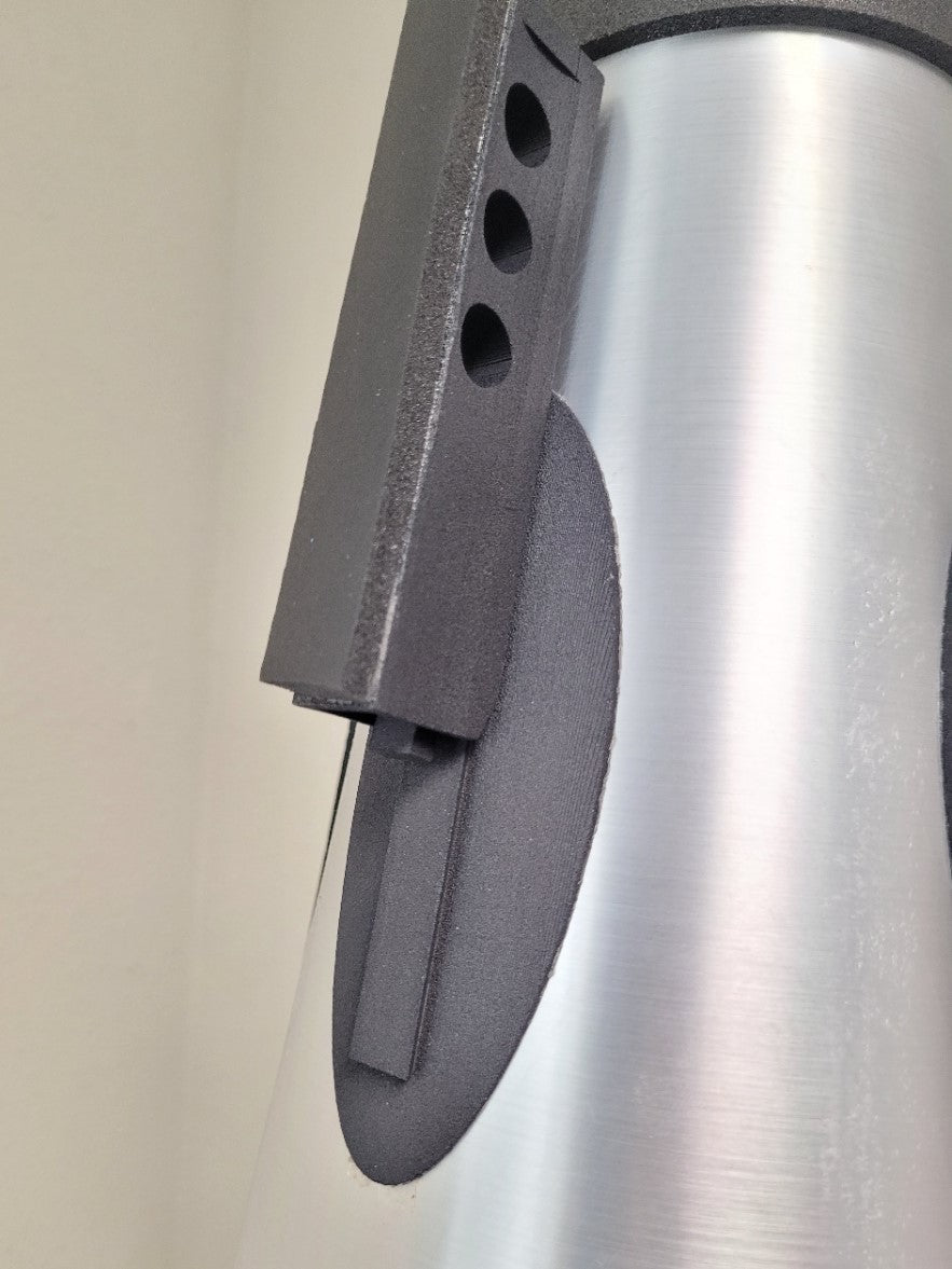 These adapter sets are designed to convert a tuba mute to using our patented removable cork system. This system allows players to easily swap out cork assemblies of varying thicknesses, ensuring compatibility with different bell throat sizes. The cork assemblies securely slide and lock onto four rail adapters, providing a stable fit. Installation and removal are quick and effortless.