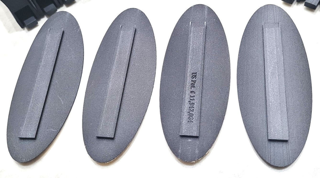 Sets include four rail adapters and up to three cork thickness sizes. Each cork assembly features a 1/4-inch thick soft foam rubber gripping surface. The rail adapters come pre-installed with double-stick adhesive tape, ensuring easy and secure installation.
